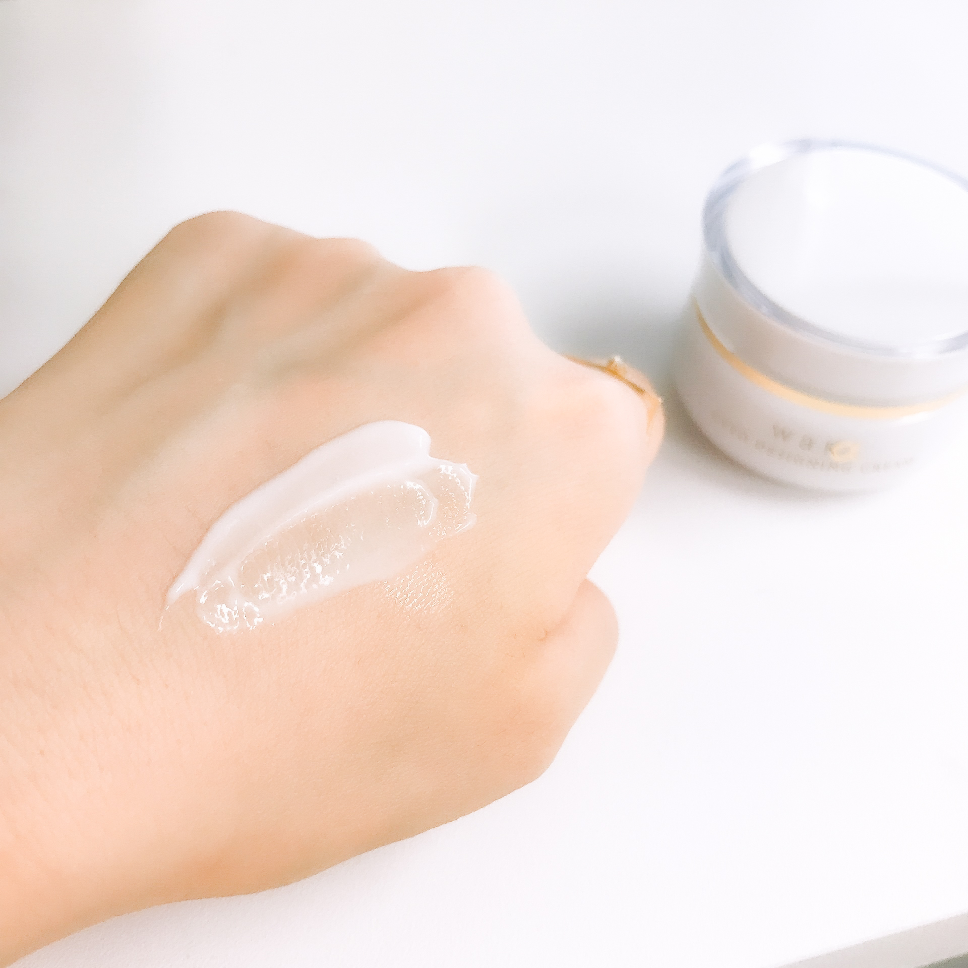 朝夜、化粧水(または美容液)の後、適量を手にとり、マッサージするようにお顔と首にやさしくなじませます。